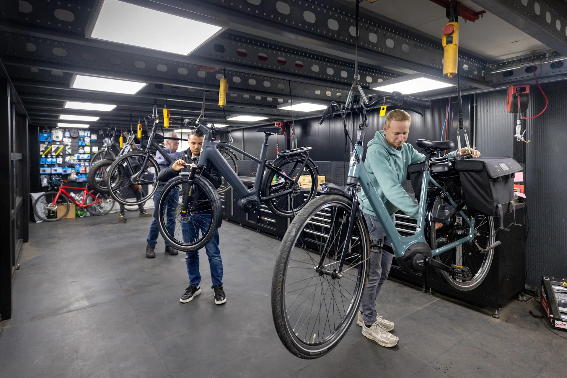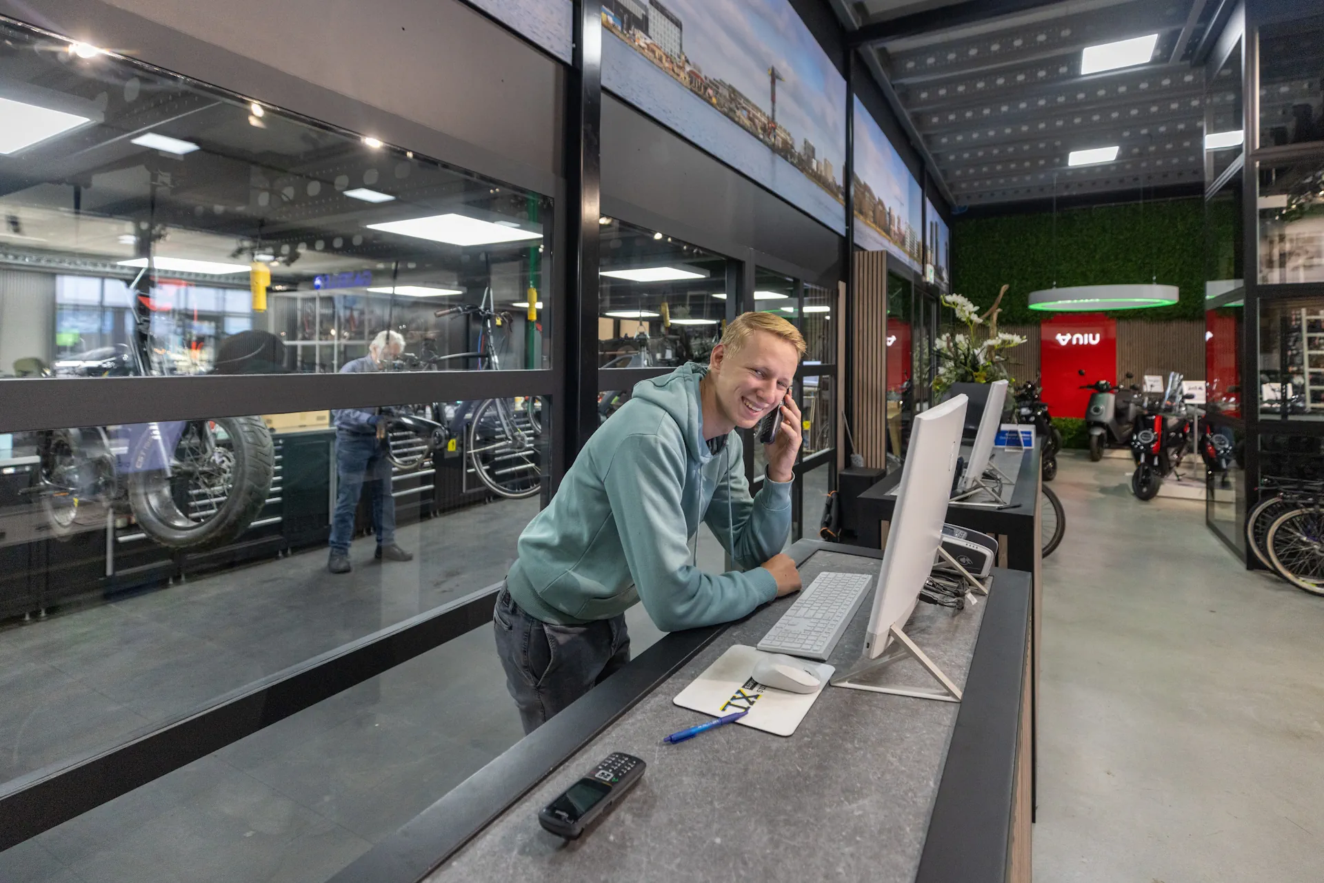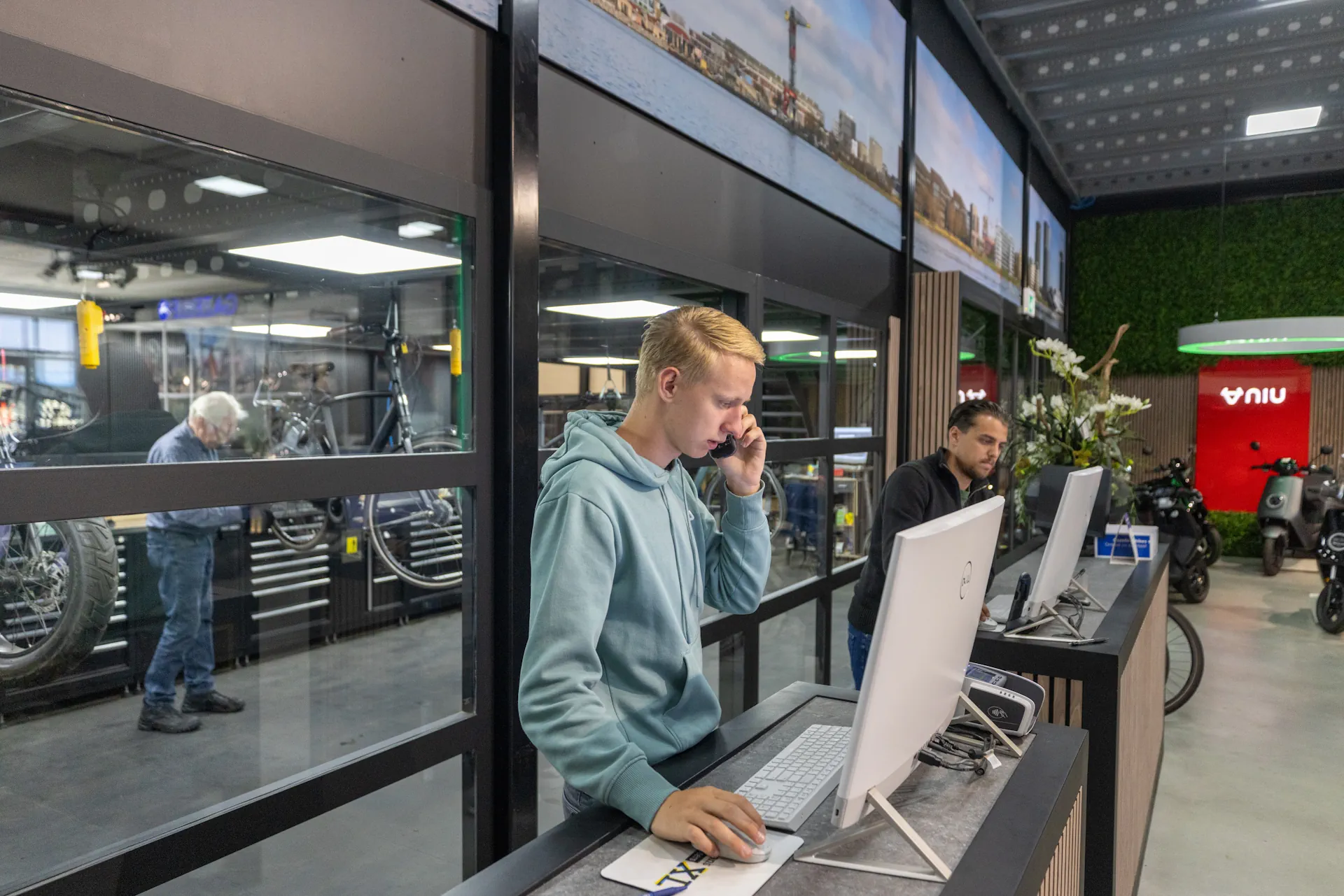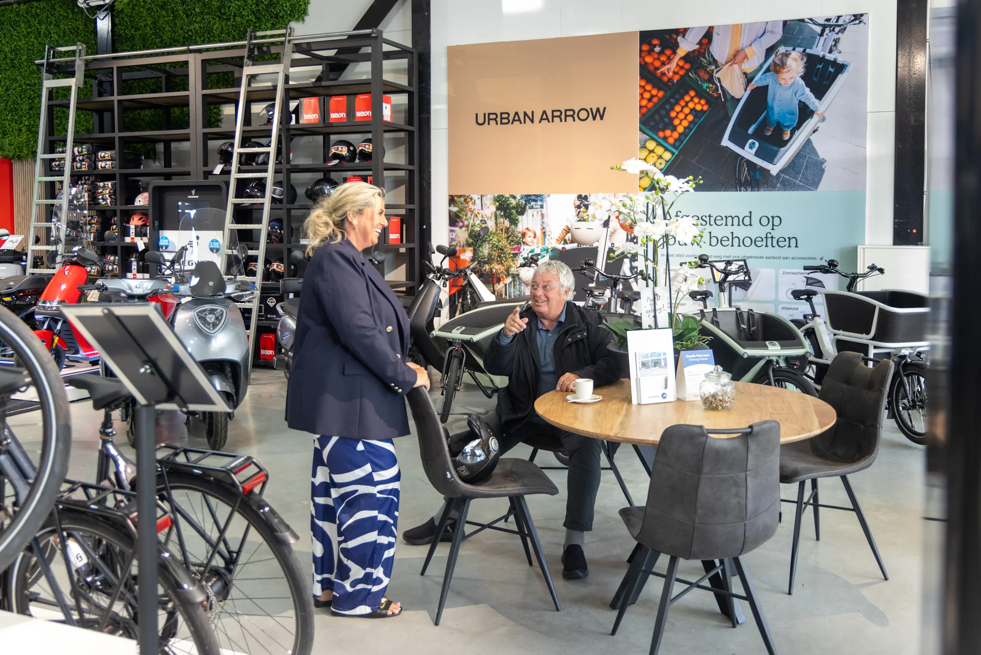 Met ruim 1100 m² is de showroom ingericht om je rustig rond te laten kijken en verschillende modellen naast elkaar te vergelijken. Van lichte en wendbare e-bikes tot stoere fatbikes, van praktische bakfietsen tot moderne scooters. Elk type heeft zijn eigen plek in de showroom. Zo zie je in één oogopslag welke uitvoering en welk merk het beste bij je past.
